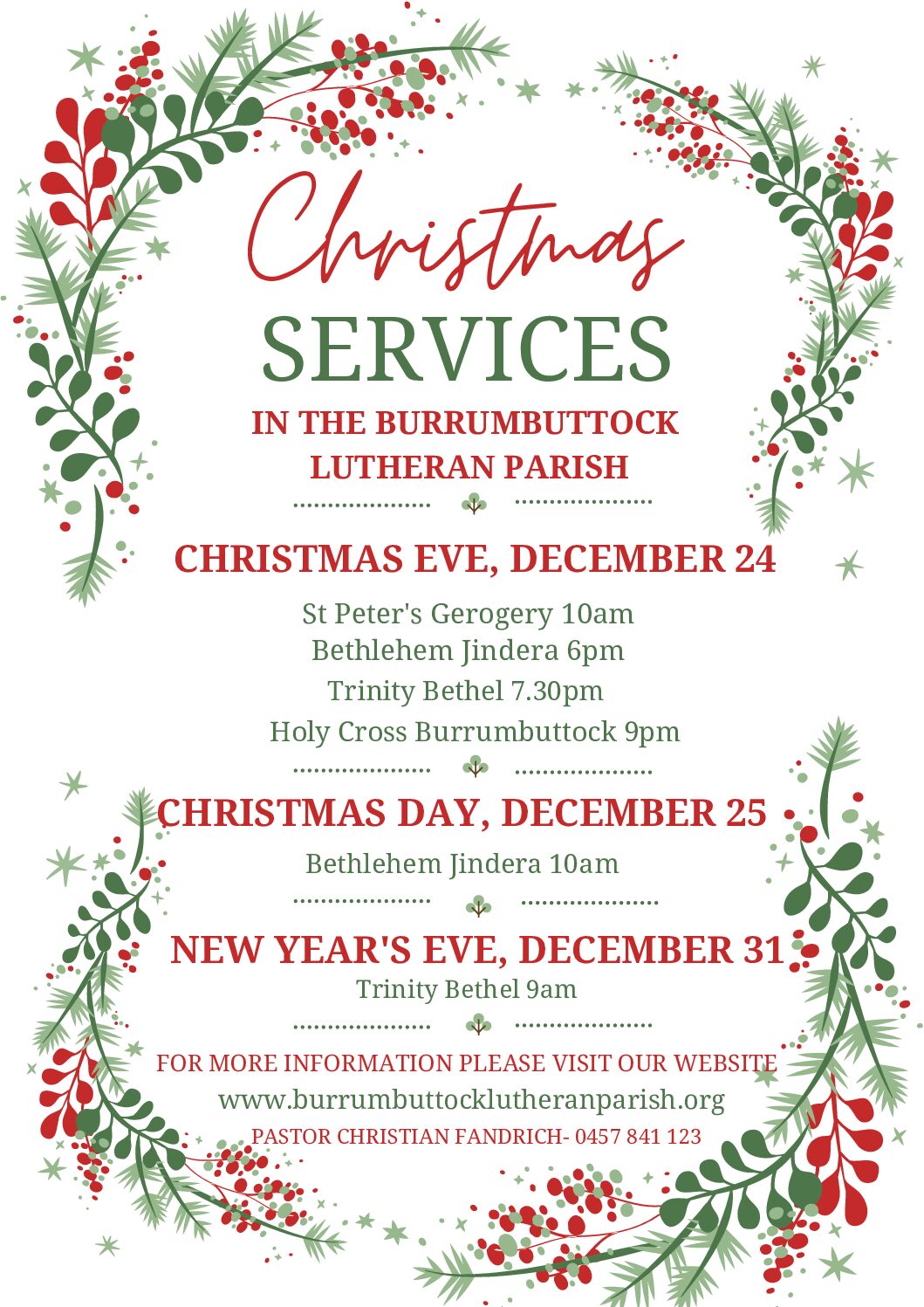 Christmas services in the Burrumbuttock Lutheran Parish